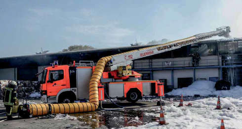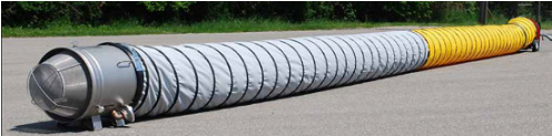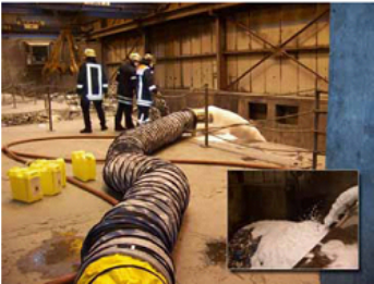 The foam generator system FlexiFoam is the well priced alternative to conventional foam generators and excludes the disadvantages of conventional foam generation hardware. The foam generation takes place directly at the location of the fire. Compared to conventional foam generators, no ready foam must be transported to the fire area The FlexiFoam system is ideal for operations when room's have to be flooded or greater areas have to be covered with foam. Compared to conventional foam nozzles, the FlexiFoam can operate directly in areas filled with smoke. The system is not using the ambient air, clean air for the foam generation is feed through ducts by the blower. Smoke will not affect the foam quality.